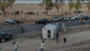 وفاة 9 أشخاص وإصابة 7 آخرين بجروح متفاوتة الخطورة في حادثة سير مروعة وقعت، الثلاثاء 15 غشت الجاري، على الطريق الرابطة بين مدينتي خريبكة وبني ملال.