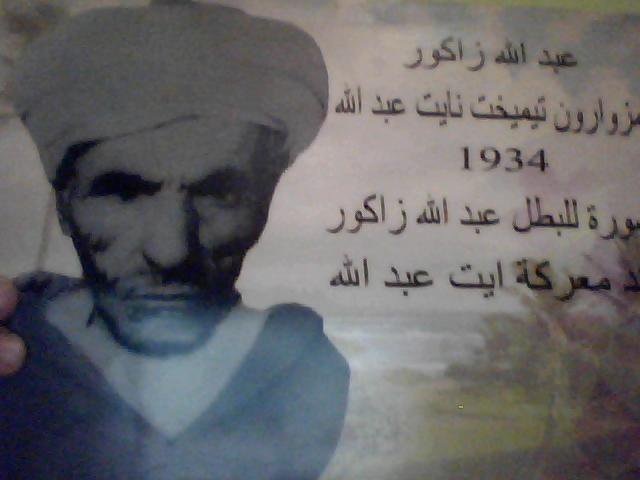 يعتبر عبد الله زاكـور- أمغار- {أوك عبلا} وبه عرف، بالشخصيةالمناضلة الخالدة، الذي ينحذر من عائلة أيت لحسن أو عبد الله،وينتمي لفخدة منقسمة إلى عدة قرى، وهو رجل مقتدر باسل شجاعلا ترهبه قوة ولا يخشى الحروب، بل يقرع الخطوب ويركب الأهوالوينفق الأموال حفاظا على قبيلته ودفاعا عن سمعته وبأسه، والكليشهد له بالشجاعة ورباطة الجأش والشدة في منازلة الأعداء وعدمالرضوخ لضغوط ومطامع المغيرين الذين يبتغون النفود ويطلبونالنهب والسلب، وكان رجلا متزهدا صبورا مؤمنا بقضاء الله، وقاومالإستعمار الفرنسي ببسالة وشجاعة نادرة.
