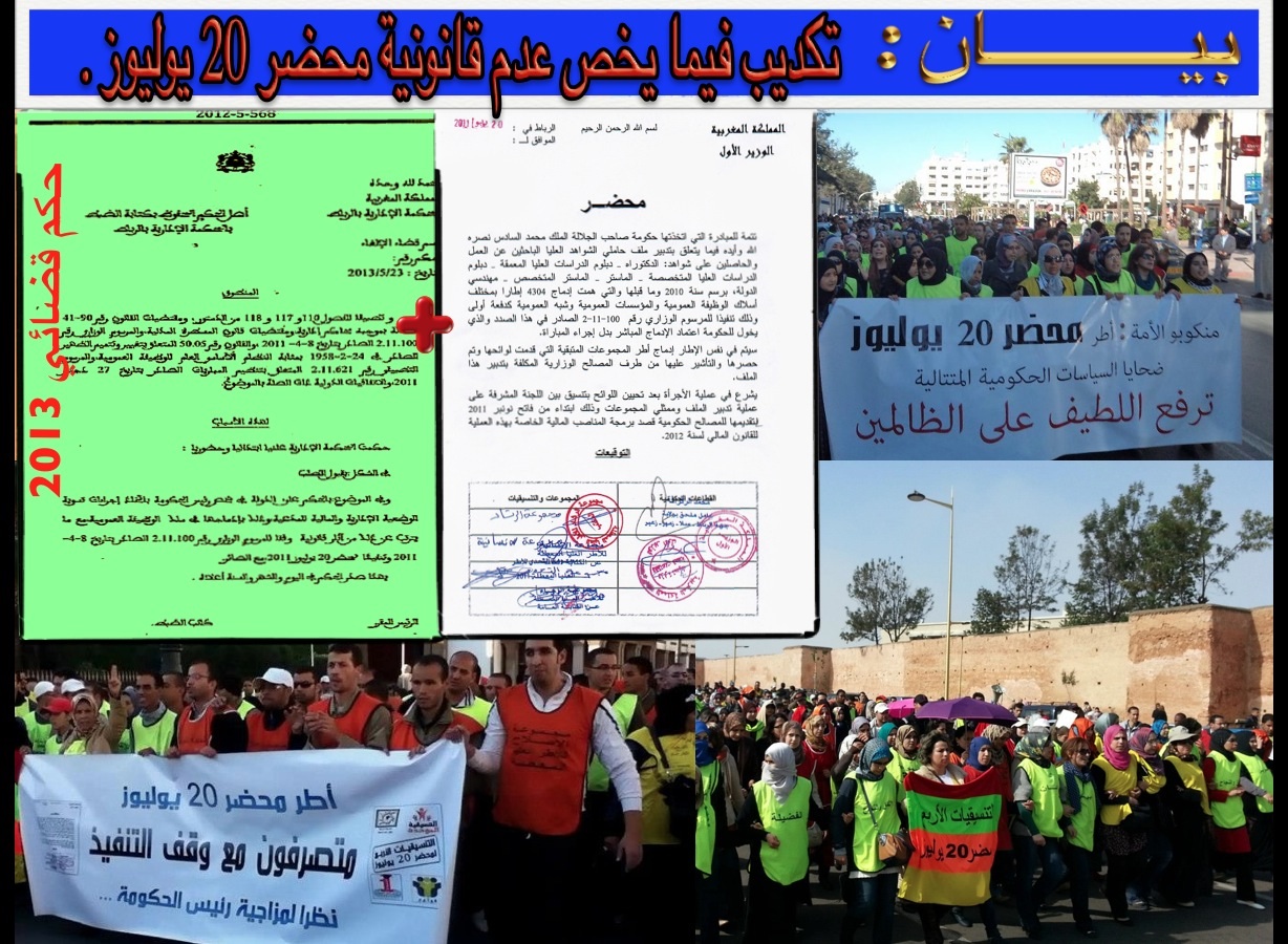 إن تنسيقيات محضر 20 يوليوز تستنكر هذا التزيف للحقائق و العمل غير النبيل و غير البريء ، الذي لا يمت لأصول و قواعد العمل الصحافي النبيل بأية صلة ، و تحتفظ لنفسها و هيئة دفاعها بالحق في المتابعة القانونية للجريدة وفقا لما تخوله القوانين الجاري بها العمل.