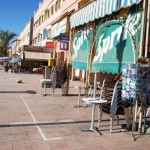 هذا لم يكفي ففي شارع محمد الخامس،كل المقاهي تحتل الملك العام،الا وهو تحت الأقواس الذي صمم لأجل اتقاء الراجل من حر الشمس،او نزول الأمطار في وقته،ولكن هذه الممرات مستغلة من طرف المقاهي ،وبعض الباعةوالبزرات، ولاسيما من مقر البلدية الى امام مكتب الإستثمار الفلاحي في اتجته العمالة،ولابد ان تأخذ هذه الملحوظة بعين الإعتبار،اما اولآئك الذين ينشرون شرقما يرف بفندق موحى او لحسن،ففي نظري ذالك المكان لم يشكل خطرا على الطريق في الوقت الحاضر،