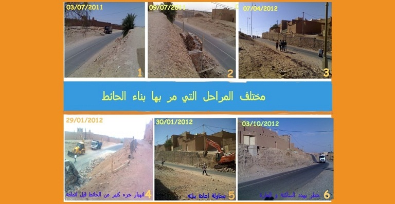 حقيقة بقايا الحائط تشكل خطرا على الطؤيق و مستعمليها ,لكن ليس تقاعسا من السلطة فالتقاعس كل التقاعس هي السلطة السابقة بالقليم التي بدات تبني الحائط نزولا عند رغبة شخصيات نافدة بدون اية دراسة اولية وبدون الاموال القانونية للحائط لانه بني من اموال مشاريع اخرى بتكونيت و تمكروت ….كذلك مسؤولية المنهندسين و التقنيين بالعمالة الذين لم يتتبعوا الحائط ولم يكلفو انفسهم عناء المراقبة واكتفى بعضهم بجمع المال لشراء السيارة الثانية في نة واحدة و اكنفى البعض في ضياع جهده في مساعدة و تتبع مشاريع الاصدقاء من الخواص . السيد العامل الحالي رجل القانون ويحمي المال العام من النهب …..وسيبني الحائط بالقانون وليس بالسيبا ….انظرو كيف بنى الصينيون الخائط العظيم و انظرو كيف بنى الالمان حائط برلين ومتى وكيف .عندما نجيب كلنا على السؤالين سيبنى حائط امزرو و سنبني الحائط عاليا بين الفساد و المفسدين المسؤةل الاول ببتنغير لتفادي تكرار التجربة