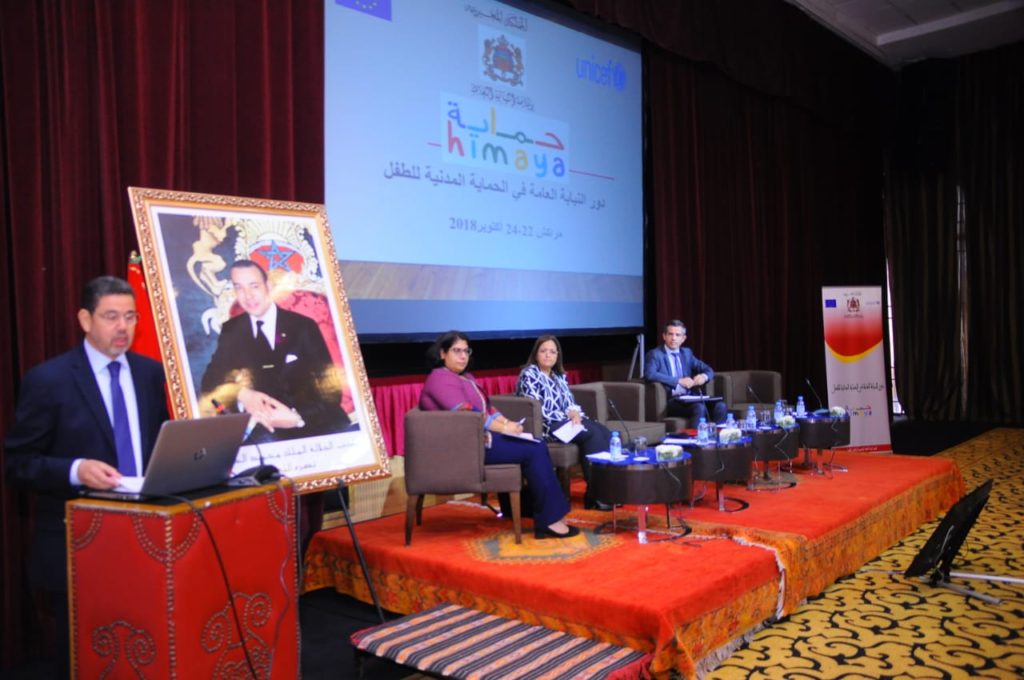 إن تنظيم هذه الأيام الدراسية حول موضوع “ تفعيل دور النيابة العامة في الحماية المدنية للطفل” ليكتسي أهمية بالغة ولذلك فإننا، إذ نهنئ أنفسنا على المستوى المتميز الذي بلغه التعاون بين رئاسة النيابة العامة ومنظمة الأمم المتحدة للطفولة، والاتحاد الأروبي وشركاء آخرين، ونتقدم إليهم بالشكر والامتنان. لنؤكد عزم رئاسة النيابة العامة على الاضطلاع بدورها كاملاً في مجال عدالة الأحداث، وسعيها الطموح إلى توفير الظروف لقضاة النيابة العامة وتأهيلهم للوفاء بالتزاماتهم تجاه المجتمع، المتمثلة في حماية الطفولة والمساهمة في إصلاح النشأ وتقويم انحرافهم في إطار الصلاحيات التي يخولها القانون للنيابة العامة.