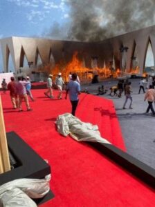 بالصور..حريق مهول يلتهم قاعة مهرجان الجونة السينمائي بمصر عشية افتتاحه
