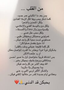 و أردف قائلا : ”غمرتوني بمحبتكن و بخوفكن علي..صدقوني لمست محبة كل واحد فيكن. أنا منيح بفضل صلواتكن.. كل كلمة قولتوها عنيتلي ودقت بالقلب.. بشكركن فرداً فرد وبعتذر ما قدرت اتواصل معكن أو أرد على اتصالاتكن.. بس ان شاء الله قريباً منتواصل أول ما صير أحسن ومنتلاقي وبرجع أشوف وجهكن بالخير.. الله يبعد الشر عن كل واحد فيكن، وما يصيبكم ولا مكروه.. والشكر الأكبر لربي اللي رد عني وعطاني أيام جديدة أقدر من خلالها التقي فيكن.. بحبكم قد الدني”.