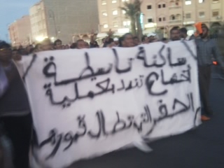 مساء يوم الاثنين 19 نونبر 2012 انطلقت من حي تانسيطة اخشاع مسيرة حاشدة جابت الشارع الرئيسي لزاكورة رافعة شعارات من قبيل ” المشاريع سرقوها ** المقبرة باعوها – واك واك على شوها ** المقبرة باعوها – يا مسؤول عيق او فيق **المقبرة رجعت طريق.
