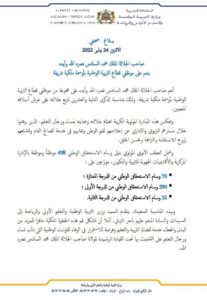 حيث بلغ عدد المنعم عليهم وفق بلاغ لوزارة التربية الوطنية، 498 موظفاً و موظفة نالوا وسام الإستحقاق الوطني، موزّعين على النحو التالي :