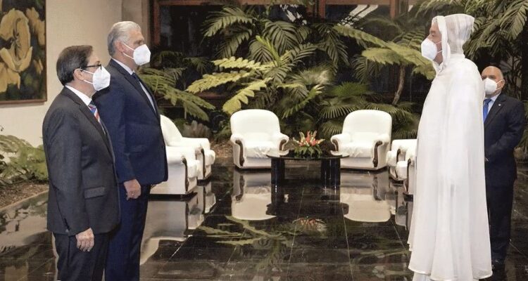 حيث إستقبل رئيس جمهورية كوبا، دياز كانيل برموديز، يوم الجمعة الماضي، هشام العَلْوي كسفير لجلالة الملك في كوبا، بحضور وزير العلاقات الخارجية الكوبي، برونو رودريغيز باريلا.