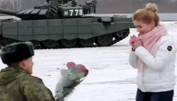حيث تداول مستخدموا مواقع التواصل الإجتماعي مقطع فيديو على نطاق واسع، يظهر جنديا أوكرانيا و هو يفاجئ حبيبته في نقطة تفتيش للجيش، و يقدم لها خاتما ليطلب يدها للزواج.