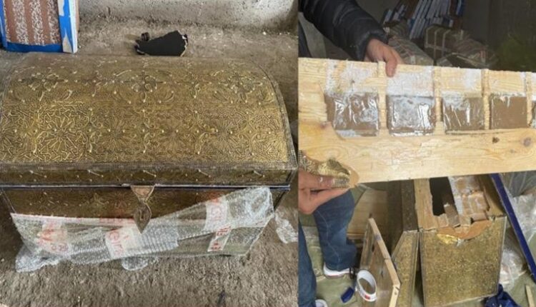 حيث أن إجراءات التفتيش التي باشرتها عناصر الشرطة القضائية مكنت من حجز تلك الكميات من المخدرات معبأة بشكل محكم في منتوجات للصناعة التقليدية عبارة عن صناديق خشبية منقوشة بالمعدن.