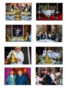 الملحون و تلاها أخيرا حصة من فن الدقة المراكشية و غناء أهل مراكش من أداء مجموعة أفوس بابا للدقة و فنون الطبخ المغربي. و إختتمت المجالس بتقديم نتاج التقطير من ماء الزهر للحضور.