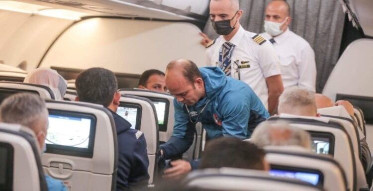 فحسب موقع “Fil Goal” المصري، فإن طبيب الأهلي قام بإسعاف سيدة مغربية متواجدة على ذات الطائرة، جراء تعرضها لوعكة صحية ناتجة عن هبوط في الدورة الدموية.