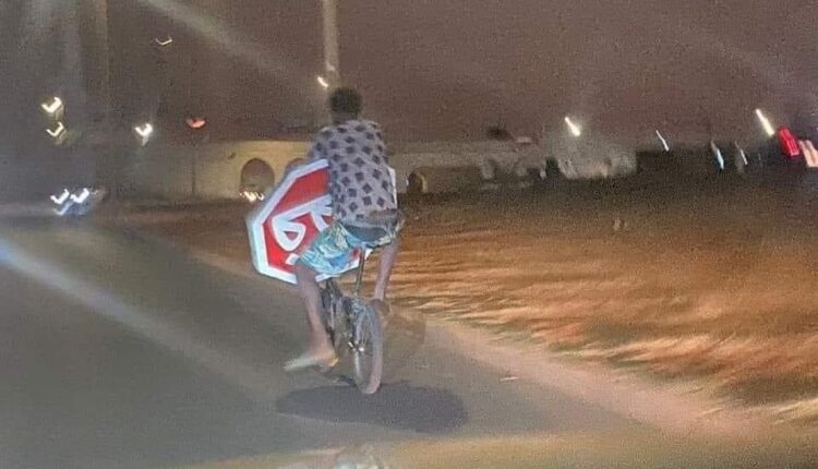 بعد تداول واسع النطاق للمغاربة لصورة الواقع، تمكنت عناصر الشرطة في سلا، ليلة الاثنين/ الثلاثاء من توقف المشبه بسرقته علامة التشوير ” قف”.