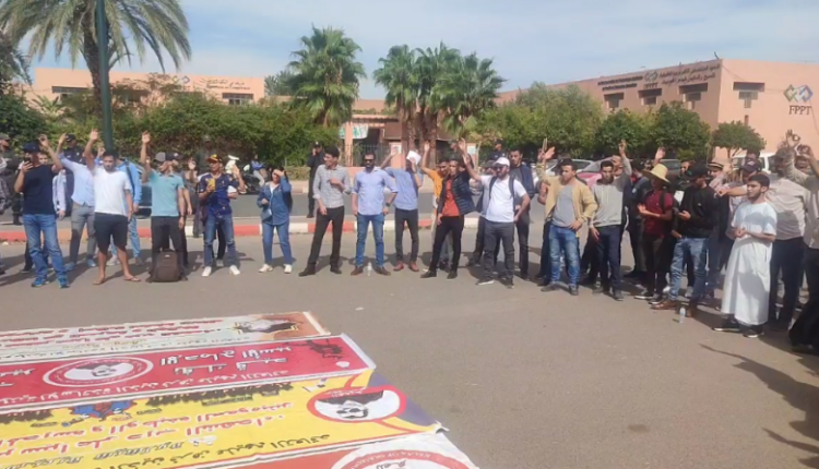 إحتجاج الأساتذة أمام الأكاديمية الجهوية للتربية و التكوين بمراكش