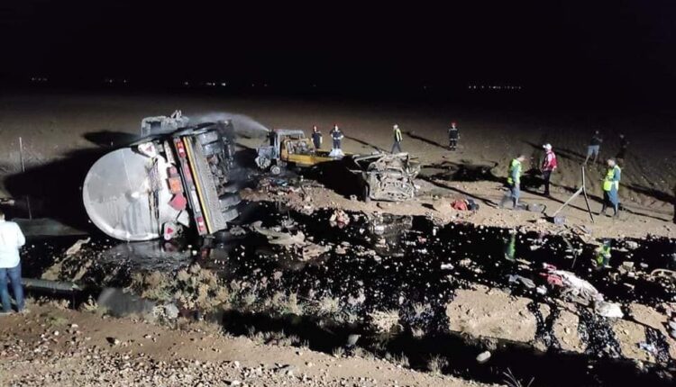 حادثة سير في الطريق السيار الرابط بين مراكش و بنجرير بين شاحنة و سيارة تنتهي بحصيلة ثقيلة