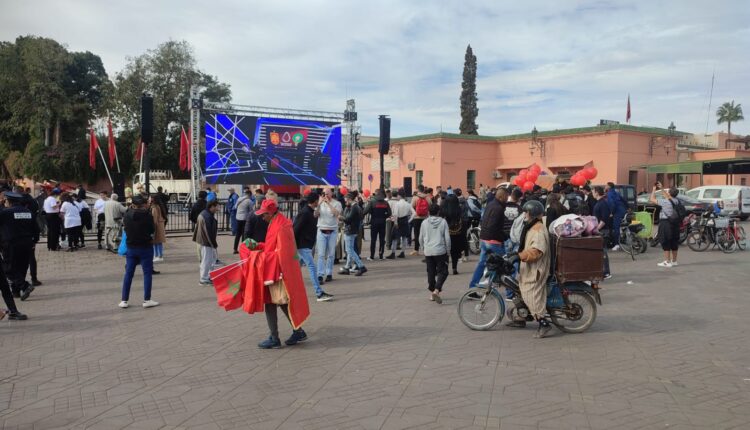 بالصور..ساحة جامع الفنا بمراكش تشهد منذ ساعات تقاطر الجماهير لمتابعة مباراة المنتخب الوطني المغربي ضد نظيره الإسباني