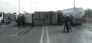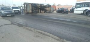 تسبب انقلاب شاحنة لنقل النفايات على الطريق بين تامنصورت و مراكش، إلى إصابة سائق الشاحنة.