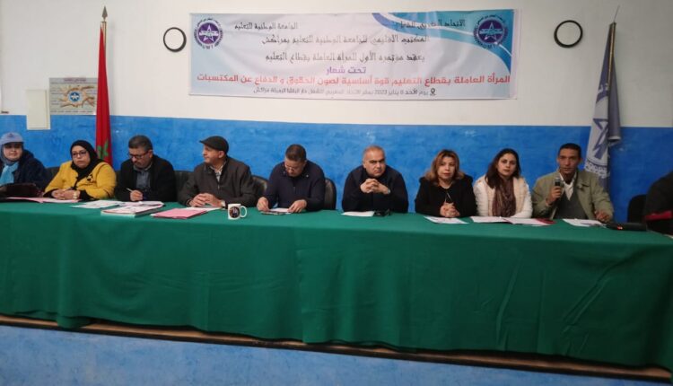 وقد اعلن المؤتمر الإقليمي الأول للمرأة العاملة بقطاع التعليم بمراكش عن اعتزازه بالنجاح الكبير الذي ميز أشغال المؤتمر، وتثمينه للمواقف والقرارات الصادرة عن الأجهزة الوطنية للجامعة الوطنية للتعليم فيما يتعلق بالقضايا الوطنية والجهوية وقضايا الطبقة العاملة عامة، مطالبا بالعناية بالأطر العاملة بالتعليم الأولي والقطاع الخاص وكل الفئات التعليمية، و بإلغاء القوانين التي تكبل وتجرم الحقوق النقابية، ورفضه للإصلاح المشؤوم وأحادي الجانب لأنظمة التقاعد.