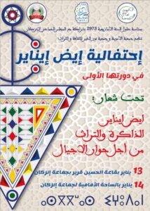تنظم جماعة إنزكان بشراكة مع جمعية الأمومة و جمعية نور الخير للثقافة و الثرات بإنزكان، في الفترة الممتدة ما بين 10 و 15 يناير 2023، الدورة الأولى من مهرجان الإحتفال بالسنة الأمازيغية الجديدة 2973 “إيض ايناير” تحت شعار “الذاكرة و التراث من أجل حوار الأجيال”.