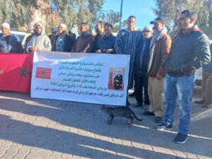 ورفع المتحتجون لافتة يستنكرون من خلالها القرار العاملي الصادر عن والي جهة مراكش آسفي عدد 142 بتاريخ خامس يناير الجاري، مرددين شعارات تطالب بالتراجع عنه و إلغائه.
