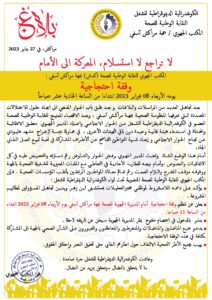 ولوح المكتب الجهوي بالدخول في اعتصام مفتوح بمقر المديرية الجهوية سيعلن عن تاريخه لاحقا.