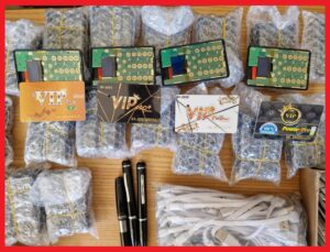 وعثر بحوزة الموقوفين، على 220 بطاقة إلكترونية من نوع VIP، و393 سماعة لا سلكية دقيقة، و180 هاتفا محمولا، علاوة على 208 من السماعات السلكية، و180 خيط كهربائي للشحن ومجموعة من قطع الغيار الخاصة بالمعدات الإلكترونية.