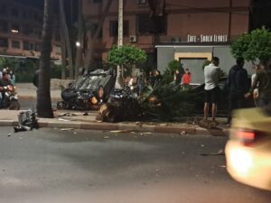 شهد شارع علال الفاسي وبالضبط بالقرب من فندق ماجوريل بمدينة مراكش، في الساعات الأولى من صباح يومه الثلاثاء 06 يونيو الجاري، حادثة سير خطيرة، تمثلت في انقلاب سيارة.