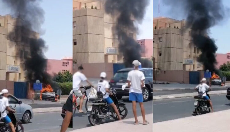 اندلع حريق ظهر اليوم الأربعاء 28 يونيو الجاري، في سيارة مركونة بالشارع العام بالقرب من مبنى المديرية العامة للضرائب بحي المسيرة الثالثة بمقاطعة المنارة بمراكش.