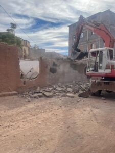 وبالموازاة مع ذلك، انطلقت عمليات هدم المساكن الصفيحية بالدواوير والتجمعات المستهدفة حيث تم هدم خلال الأيام الأخيرة 37 سكن صفيحي بدوار مولاي عزوز (2)، 64 سكن صفيحي بدوار حاحا الضاوي بنسبة % 100 وكذا 37 سكن في الحواجز و الجيوب.