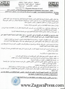 أصدرت المنظمة الديمقراطية للتعليم بيانا شديد اللهجة توصلت جريدتنا بنسخة منه تدعو فيه الشغيلة التعليمية إلى تنظيم اعتصام ليلي أمام مقر الأكاديمية الجهوية للتربية والتكوين أيام الأربعاء- الخميس – الجمعة 6/7/8 مارس 2013م ابتداء من الساعة السابعة والنصف إلى الساعة العاشرة والنصف ليلا، لتتوج هذه الأشكال النضالية بمبيت ليلي يومي الأربعاء والخميس 11/13 مارس 2013 ابتداء من الساعة الثامنة ليلا.