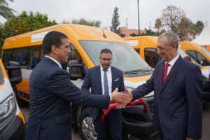 وتهم عملية التسليم 12 سيارة للنقل المدرسي تم اقتناؤها في إطار برنامج الدفع بالرأسمال البشري للأجيال الصاعدة بهدف دعم التمدرس والمساهمة في محاربة الهدر والإخفاق المدرسي، وذلك لفائدة 10 جماعات ترابية حيث سيستفيد من هذه السيارات 624 تلميذة وتلميذ، و03 سيارات للنقل لفائدة ثلاثة جمعيات تشتغل في مجال الإعاقة لدعم خدمات النقل المدرسي التي تقدمها لفائدة 135 طفل وطفلة من ذوي الإعاقة الحركية.
