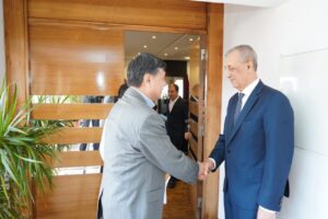 إستقبل فريد شوراق والي جهة مراكش آسفي و عامل عمالة مراكش بعد زوال الجمعة 26 يناير 2024 السيد المدير العام للشركة الصينية“China Railway Design Corporation » CRDC المكلفة بإنجاز الدراسات المتعلقة بتمديد الخط فائق السرعة “تي جي في” مراكش– أكادير.