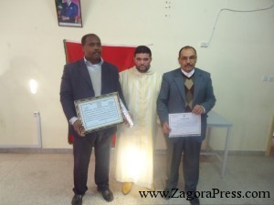 نظم النادي الثقافي والفني بتنسيق مع نادي الإمام ورش للتجويد يومه الجمعة 5 أبريل 2013 على الساعة الثالثة بعد الزوال أمسية ثقافية وفنية تخليدا لليوم العالمي للشعر والمسرح واحتفاء بتلاميذة المؤسسة الفائزين في مسابقة التجويد التي قام بها المجلس العلمي لإقليم تنغير.ولقد افتتح النشاط بآيات بينات من الذكر الحكيم، بعدها تناول السيد المدير محمد ايت ايكو الكلمة، حيث رحب بالحضور و ثمن إبداعات التلاميذ في إغناء الأمسية وهنأ الفائزين في مسابقة التجويد كما لم تفته الفرصة لشكر الأساتذة المؤطرين للنادي الثقافي ونادي التجويد، وبعد ذلك أخذ الكلمة رئيس جمعية أخبا المساندة لفئة التلاميذ حفظة القرآن، حيث عبر عن مساهمة الجمعية اللامشروط في تأهيل التلاميذ لحفظ القرآن وتجويده. وبعد هذه الكلمة تم الشروع في الأمسية التي تعددت فقراتها وتنوعت بين قصائد شعرية وأعمال مسرحية من إبداعات تلاميذة المؤسسة، كما تخلل الأمسية بعض المستملحات. وفي ختام الأمسية تم توزيع الجوائز على المتفوقين في مسابقة التجويد، وبعد ذلك رحب بالجميع لحفلة شاي.
