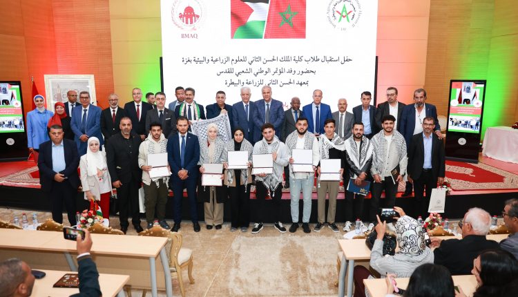 جرى اليوم، في الرباط، تنظيم حفل استقبال لفائدة ثمانية من الطلاب الفلسطينيين، من كلية الملك الحسن الثاني للعلوم الزراعية والبيئية في غزة، من أصل أحد عشر طالبا من القطاع، قُبِلت ملفاتهم لاستكمال دراستهم، كطلاب زائرين، بمعهد الحسن الثاني للزراعة والبيطرة بالرباط، في تخصصات الطب البيطري والإنتاج الحيواني.
