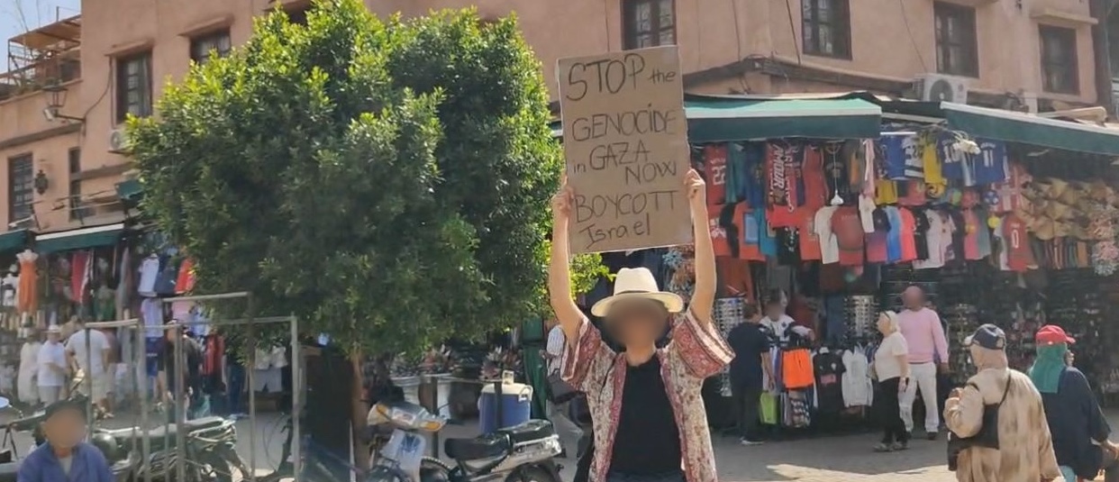 أوقفت عناصر الشرطة التابعة للدائرة الأمنية بساحة جامع الفنا في مراكش، اليوم الثلاثاء، سيدة رومانية كانت تحمل لافتة تدعو إلى وقف الحرب على غزة و مقاطعة إسرائيل.