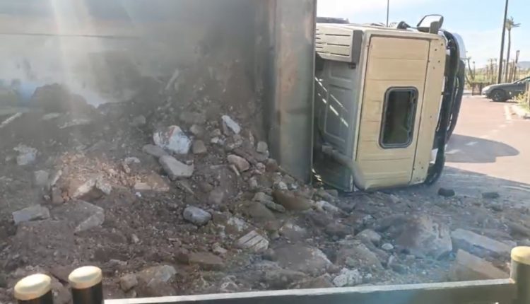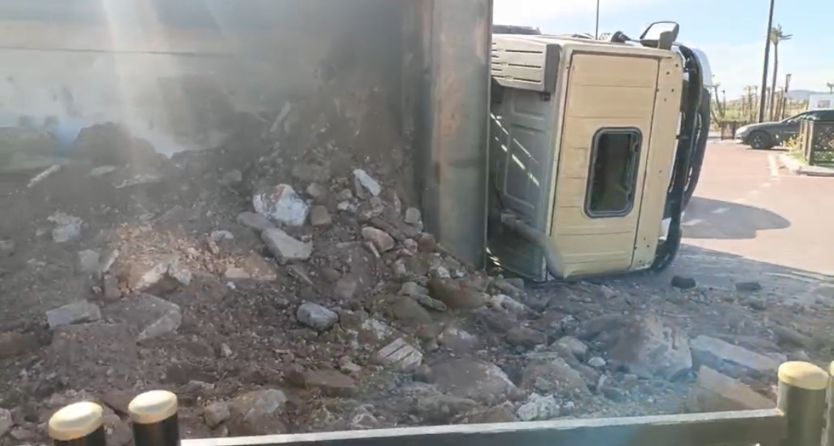 شهد المدخل الشمالي لمدينة مراكش، قبل قليل من يومه الثلاثاء، حادثة سير جراء انقلاب شاحنة من الحجم الكبير كانت محملة بالأتربة، وذلك على مستوى الطريق الوطنية الرابطة بين الدار البيضاء ومراكش، وتحديداً بالقرب من الملعب الكبير.