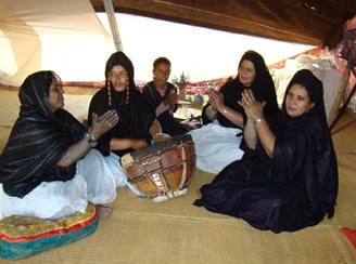 وفقا لطقوس الزواج التقليدي في الصحراء يتم خلال ليلة الدخلة ما يعرف بالترواغ و هو إخفاء العروس من جانب صديقاتها في مكان سري و مجهول الأمر الذي يلزم العريس بمعية أصدقائه البحث عنها و العثور عليها مهما كلف الأمر و يأتي الغرض من ذالك إثارة الحماس و الشعور بالغيرة لدى العريس و اختبار درجة حبه و تعلقه بعروسه و لخداع العريس و معاونيه تتزين إحدى صديقات العروس و ترتدي أزياء شبيهة بملابسها و تختبئ في مكان قريب حيث يعثر عليها بسهولة ليتم حملها خطأ إلى العريس الذي يفاجأ بمجرد الكشف عن وجهها و هو ما يسمى لمرط أي الخدعة و التو هيم في القاموس الشعبي الحساني لحظتها ينقلب المشهد إلى مسرح من الضحك و السخرية و يستمر البحث عن العروس. أما الليلة الأخيرة تسمى بأحشلاف و تعني النهاية و فيها تبيت العروس إلى جانب زوجها.