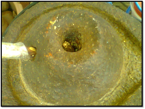 ويتطلب الأمر ساعات عدة قبل أن تبدأ الزيت بالانسياب . إذ يجب تكرار خلط وتنظيف البذور بالماء حتى تصبح على شكل عجين :